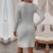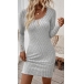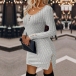 This dress features a classic crew neckline with button detailing, long sleeves for added coverage, a ribbed texture for a modern touch. It is perfect for a casual yet stylish look.
