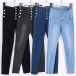 Fashion Button Decoration High-rise Plush Lined Skinny Jeans