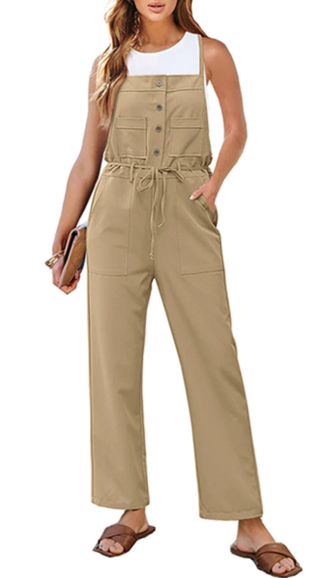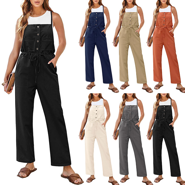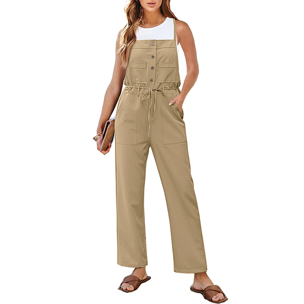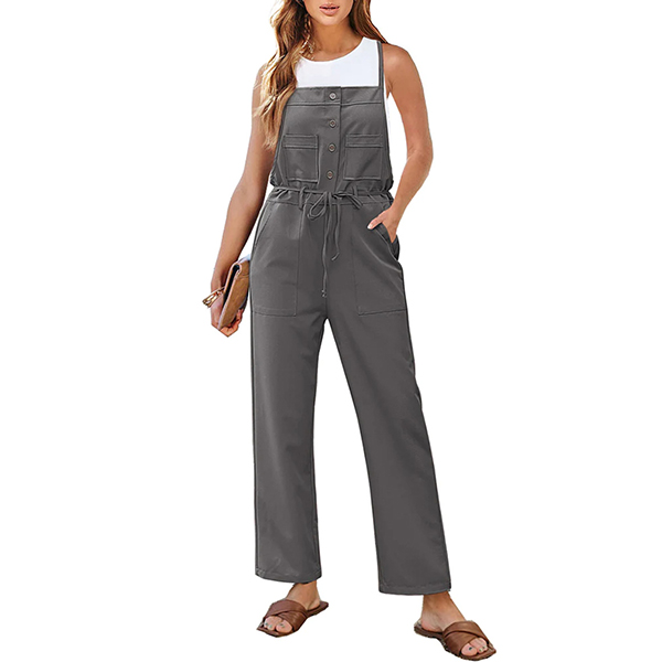 Fashion Button Drawstring Straight-cut Jumpsuit