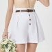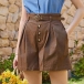 These stylish and versatile shorts feature a classic button-fly closure that adds a touch of vintage charm and style. The high-rise design offers a flattering silhouette and pairs perfectly with cropped tops, blouses, or t-shirts. It is perfect for everyday wear.