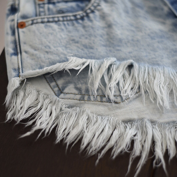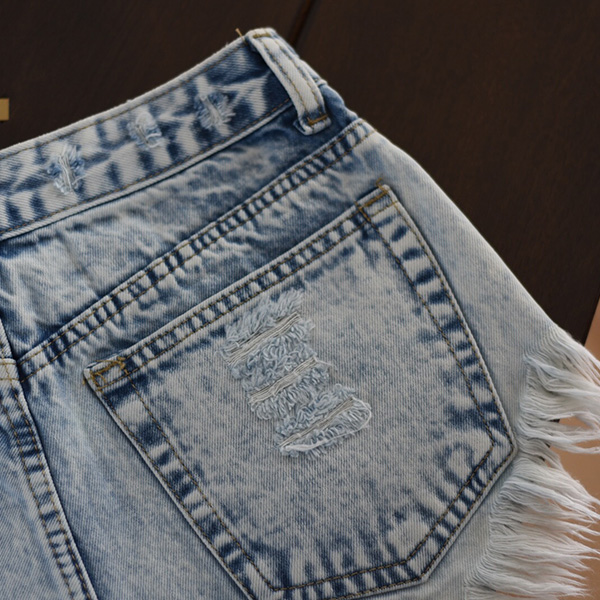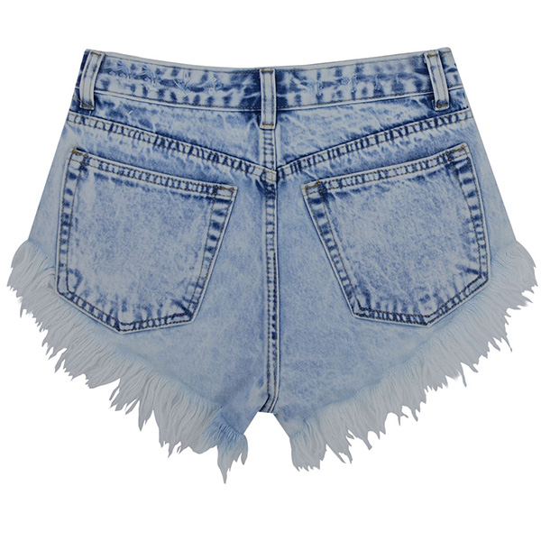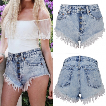 Fashion Button High-rise Frayed Hemline Old-washed Denim Hot Shorts