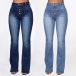 Fashion Button High-rise Patch Pockets Straight-cut Old-washed Denim Jeans
