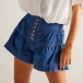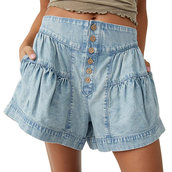 Fashion Button High-rise Pleated Denim Shorts