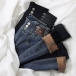 Fashion Button High-rise Plush Lined Skinny Old-washed Denim Jeans