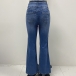 Fashion Button High-rise Straight-cut Old-washed Denim Jeans
