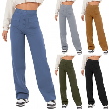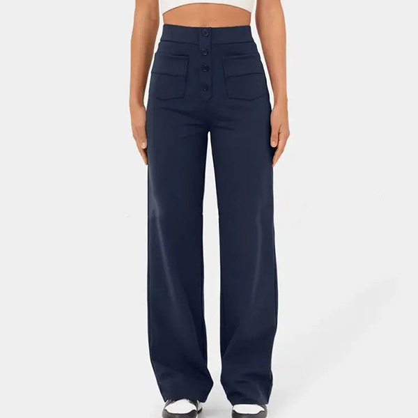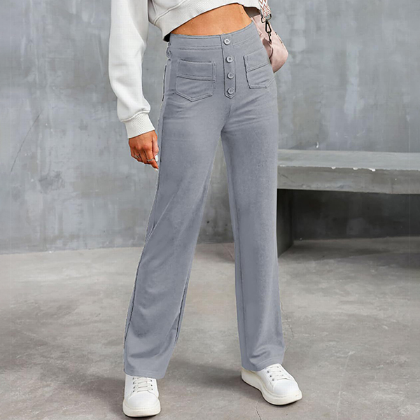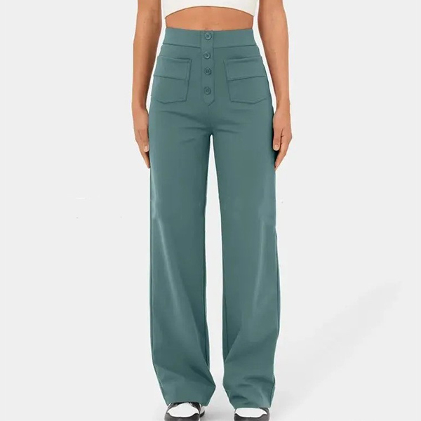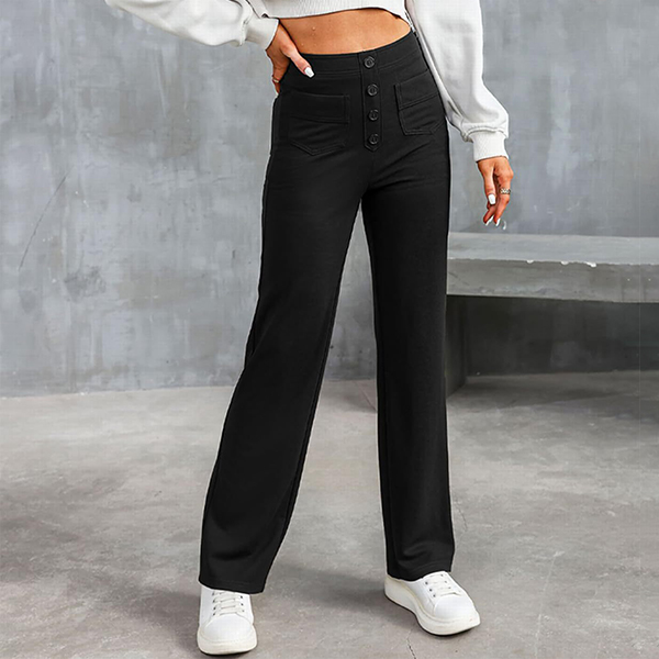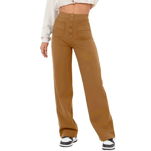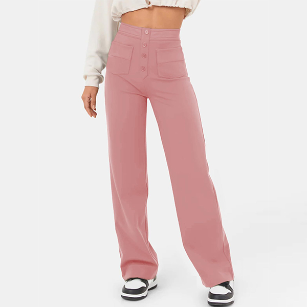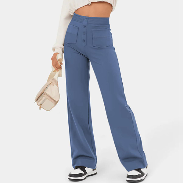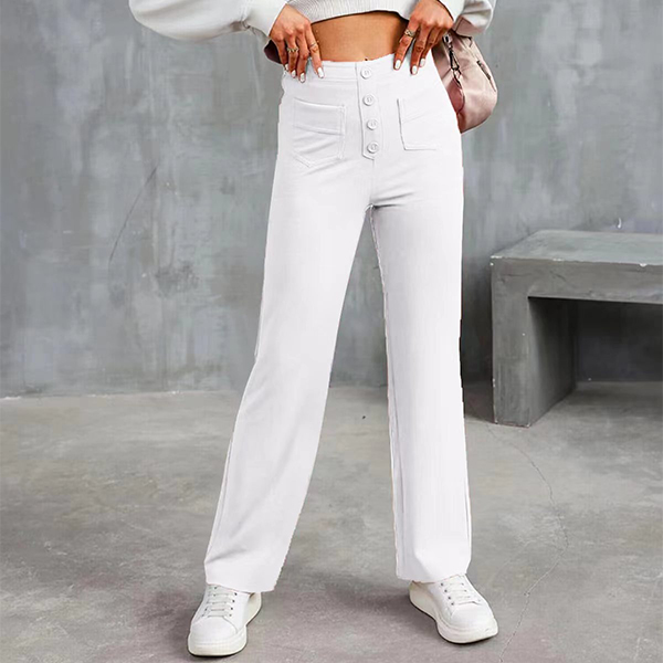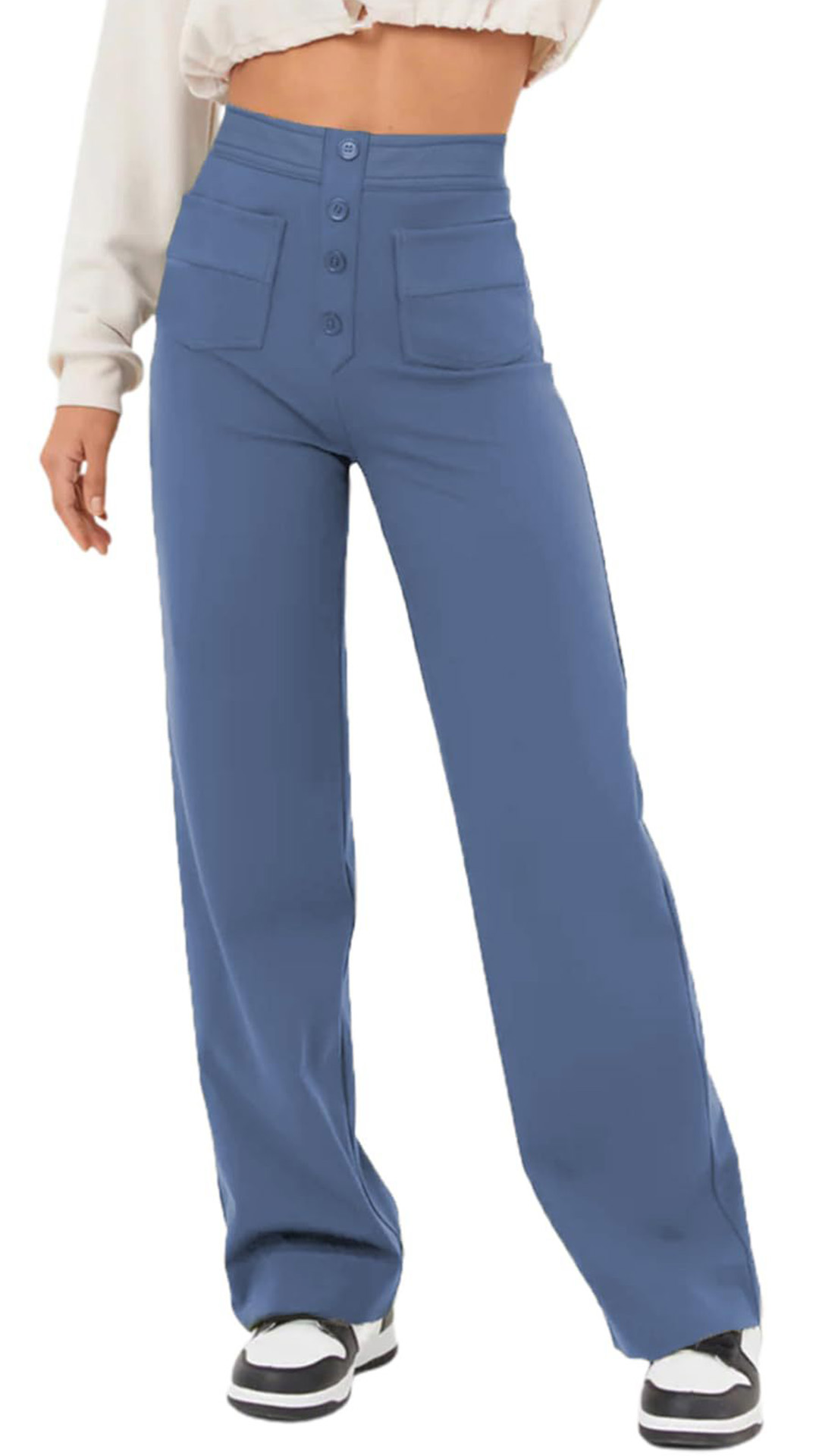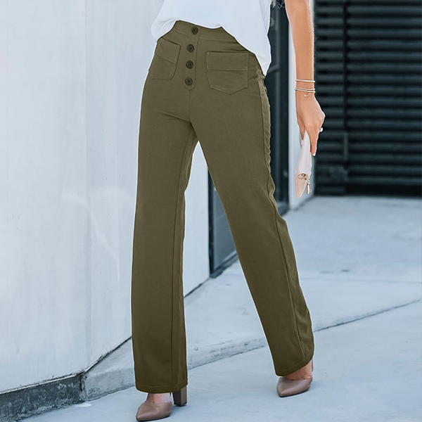 This pants features a high-rise waist, button-front closure, and straight-cut silhouette for a chic and modern look. You could pair it with a casual crop shit for a fashion street look!