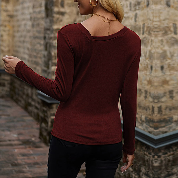 Fashion Button Irregular Neckline Long Sleeve Shirt
