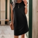 This black dress features a front button, lace detailing on the cap sleeve and a mini length for a chic and feminine look.