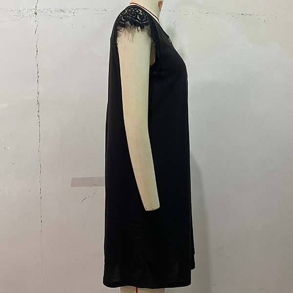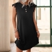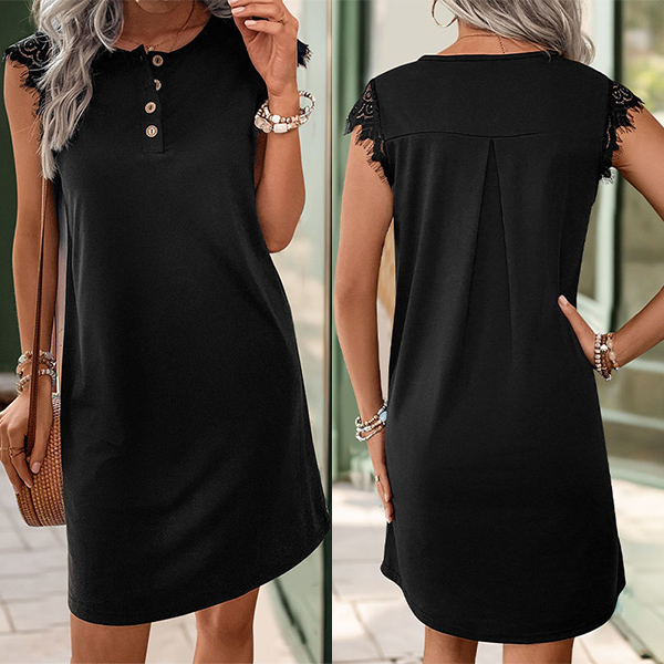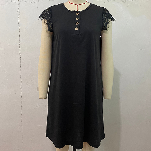 Fashion Button Lace Spliced Cap Sleeve Mini Dress