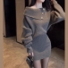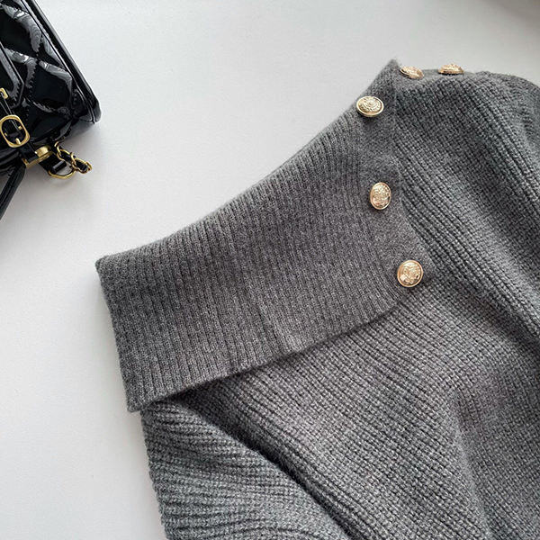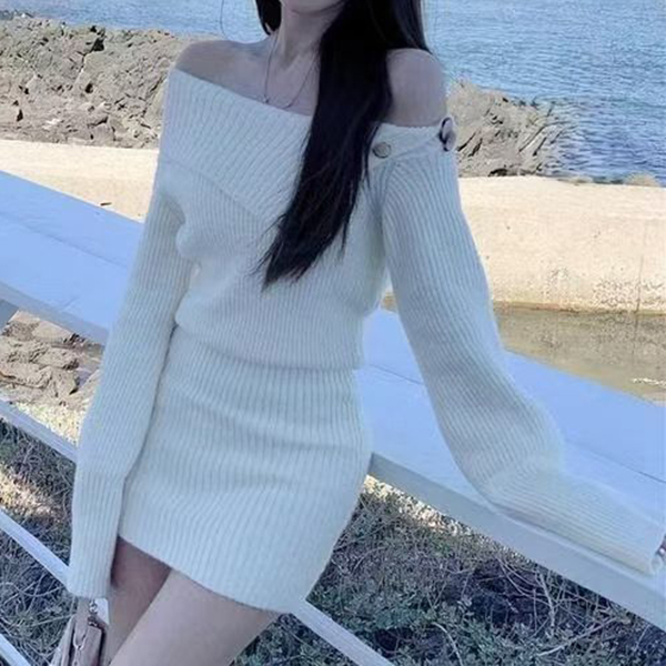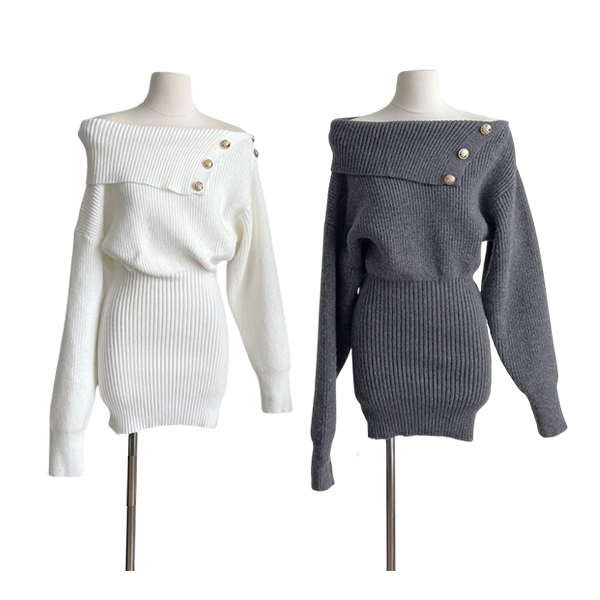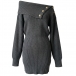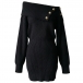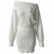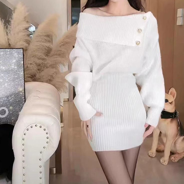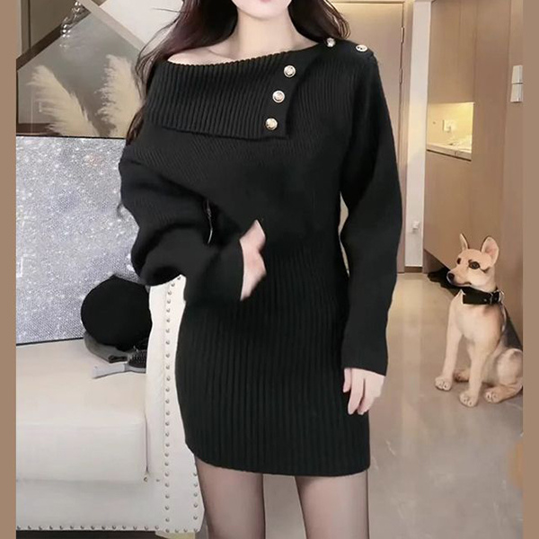 Fashion Button Lapel Neckline Batwing Sleeve Knitted Bodycon Dress