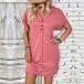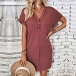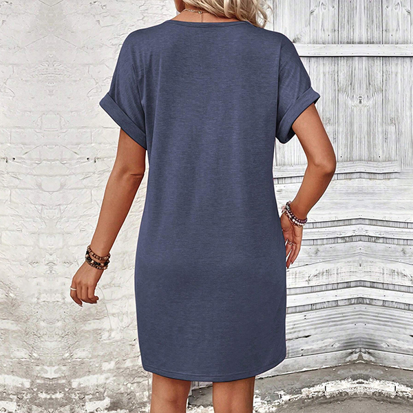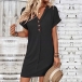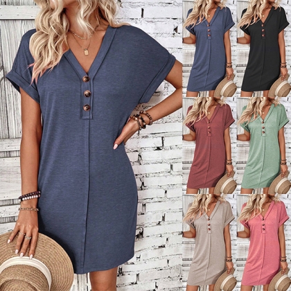 This casual dress combines a classic button decoration with a stylish V-neckline and cap sleeves to create a versatile and fashionable piece that is perfect for a variety of occasions. Hope you like it.