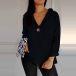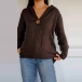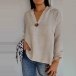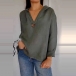 Fashion Button V-neck Long Sleeve Cotton and Linen Hood Shirt