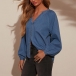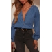 Fashion Button V-neck Long Sleeve Denim Shirt