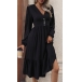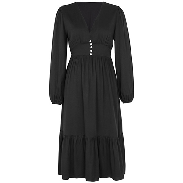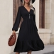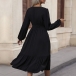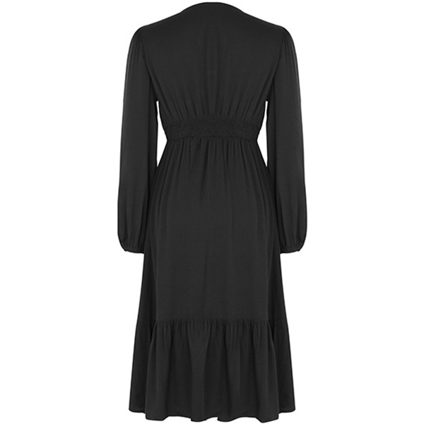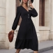 Fashion Button V-neck Long Sleeve Midi Dress