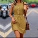 Fashion Button V-neck Sleeveless Elastic Drawstring Waist Mini Dress