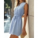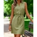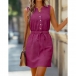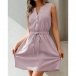 Fashion Button V-neck Sleeveless Elastic Drawstring Waist Mini Dress