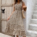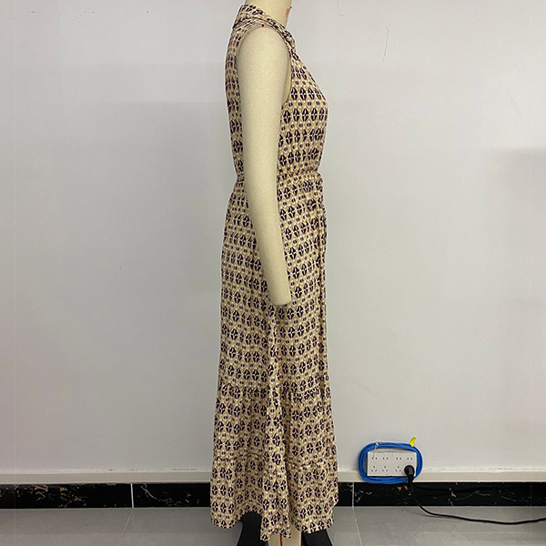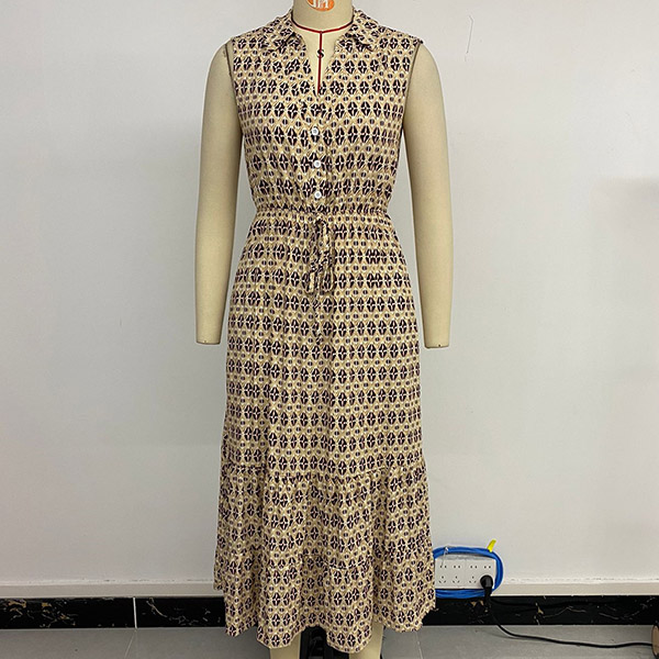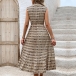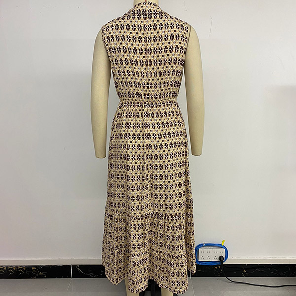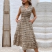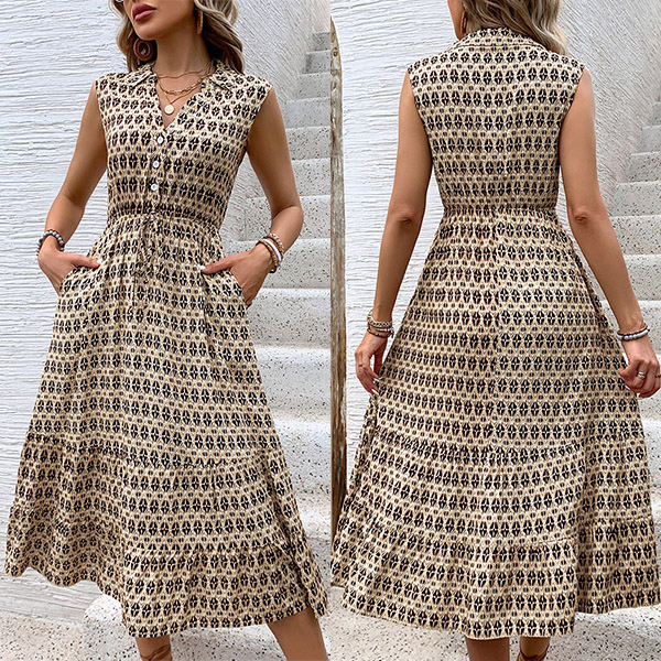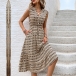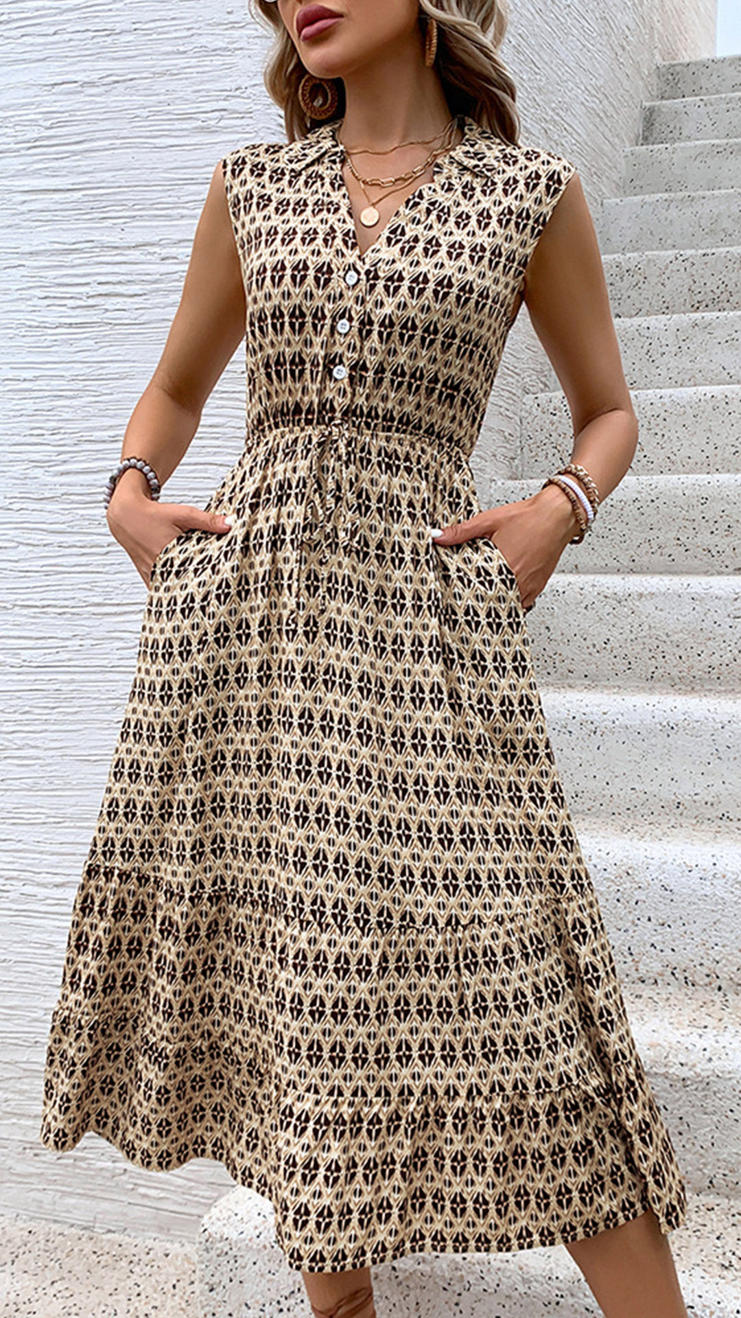 Fashion Button V-neck Sleeveless High-rise Printed Midi Dress