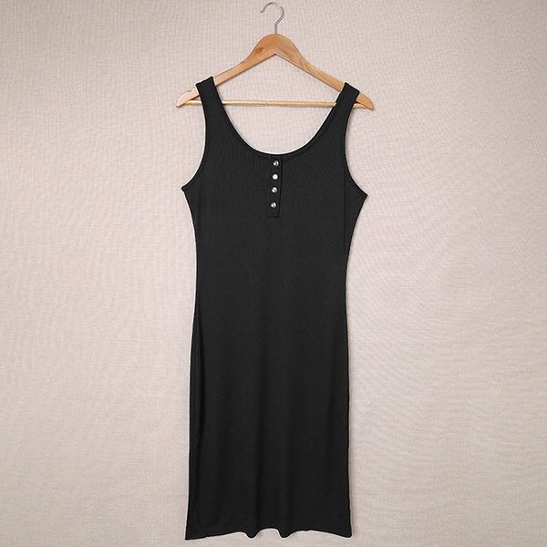 Fashion Buttoned Black Tank Dress