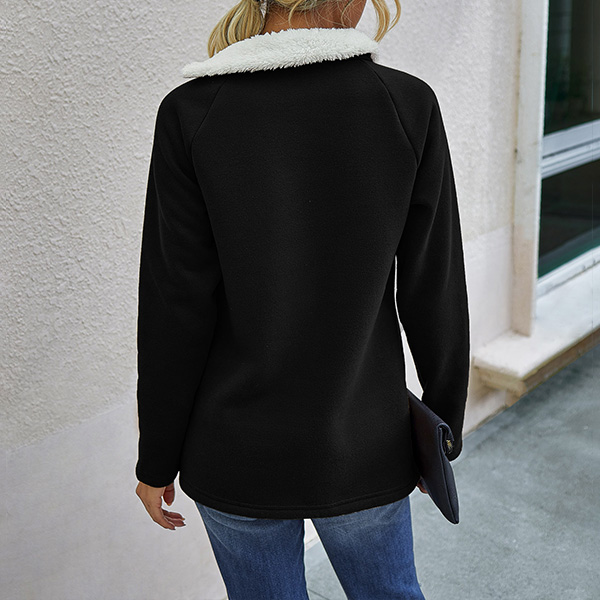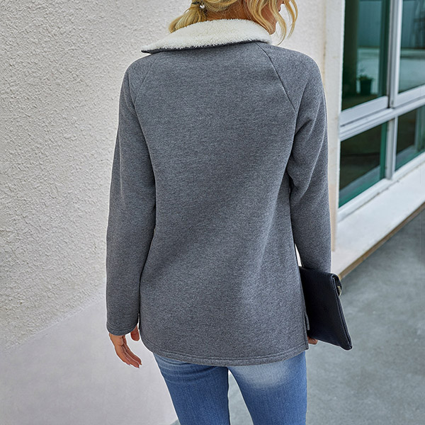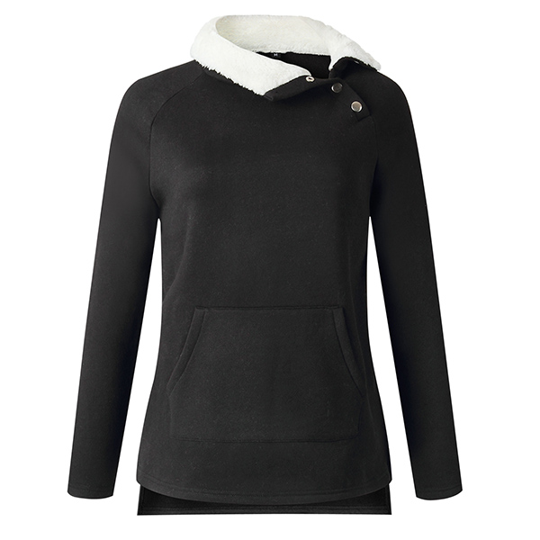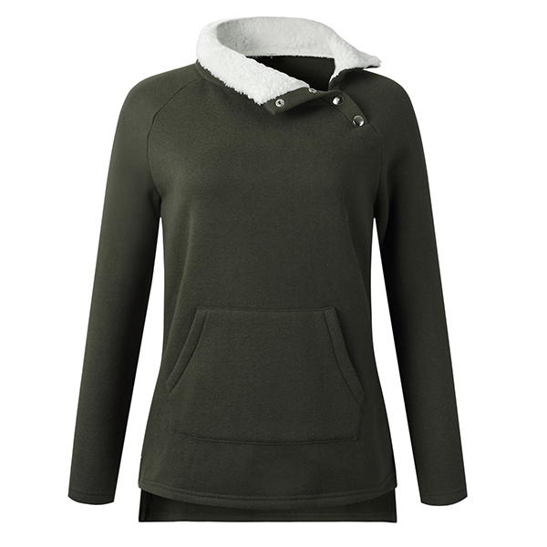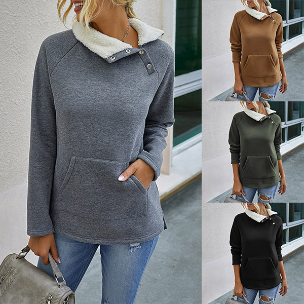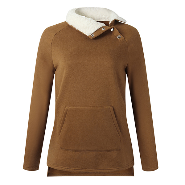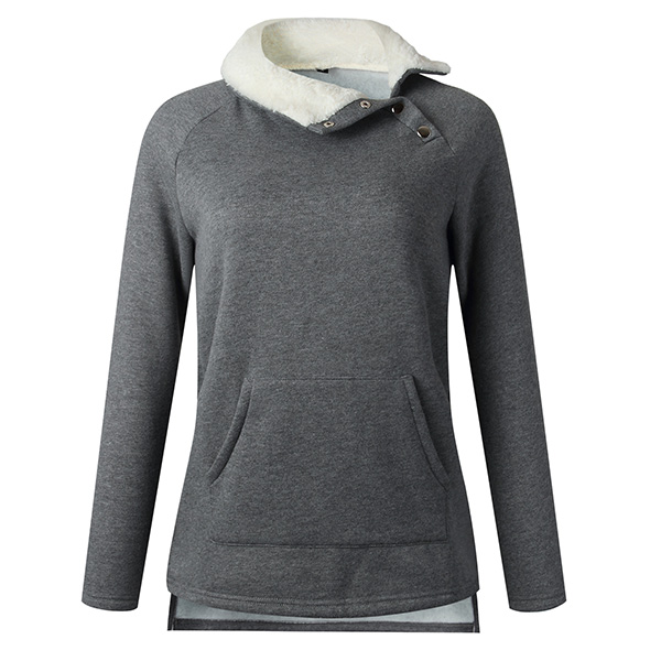 Fashion Buttoned Plush Lined Long Sleeve Kangaroo Pocket Sweatshirt