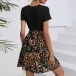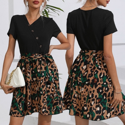 Fashion Buttoned Short Sleeve Printed Self-tie Mini Dress