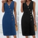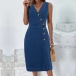 Fashion Buttoned V-neck Sleeveless Denim Dress