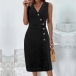 Get ready to rock the denim trend with this stylish and versatile dress. The buttoned V-neck design adds a touch of sophistication, while the sleeveless silhouette keeps you cool and comfortable in warmer weather.