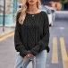 Stay cozy and chic with this Sweater. The cable-knitted design adds a classic and timeless appeal, while the round neckline offers a versatile and flattering look. The batwing sleeves add a touch of uniqueness and provide a relaxed and comfortable fit.