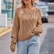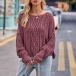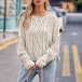 Fashion Cable Knitted Round Neck Batwing Sleeve Sweater