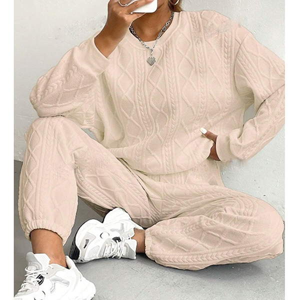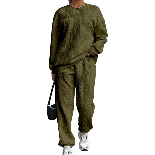 Fashion Cable Knitted Two-piece Set Consist of Sweater and Pants