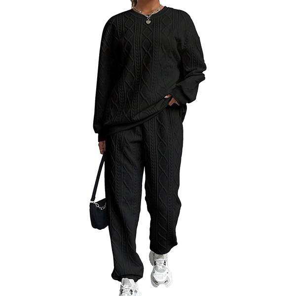 This coordinated knitwear ensemble brings cozy sophistication through artisanal cable detailing and matching silhouettes. The intricate cable knit pattern adds textural richness and traditional craftsmanship appeal, while the two-piece format creates effortless coordination with contemporary versatility. The matching sweater and pants deliver comfort-focused styling that feels polished enough for various occasions while maintaining the relaxed appeal of quality knitwear. Perfect for lounging in style, casual outings, work-from-home comfort, or anytime you want coordinated ease with elevated appeal. Multi-colors available.