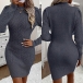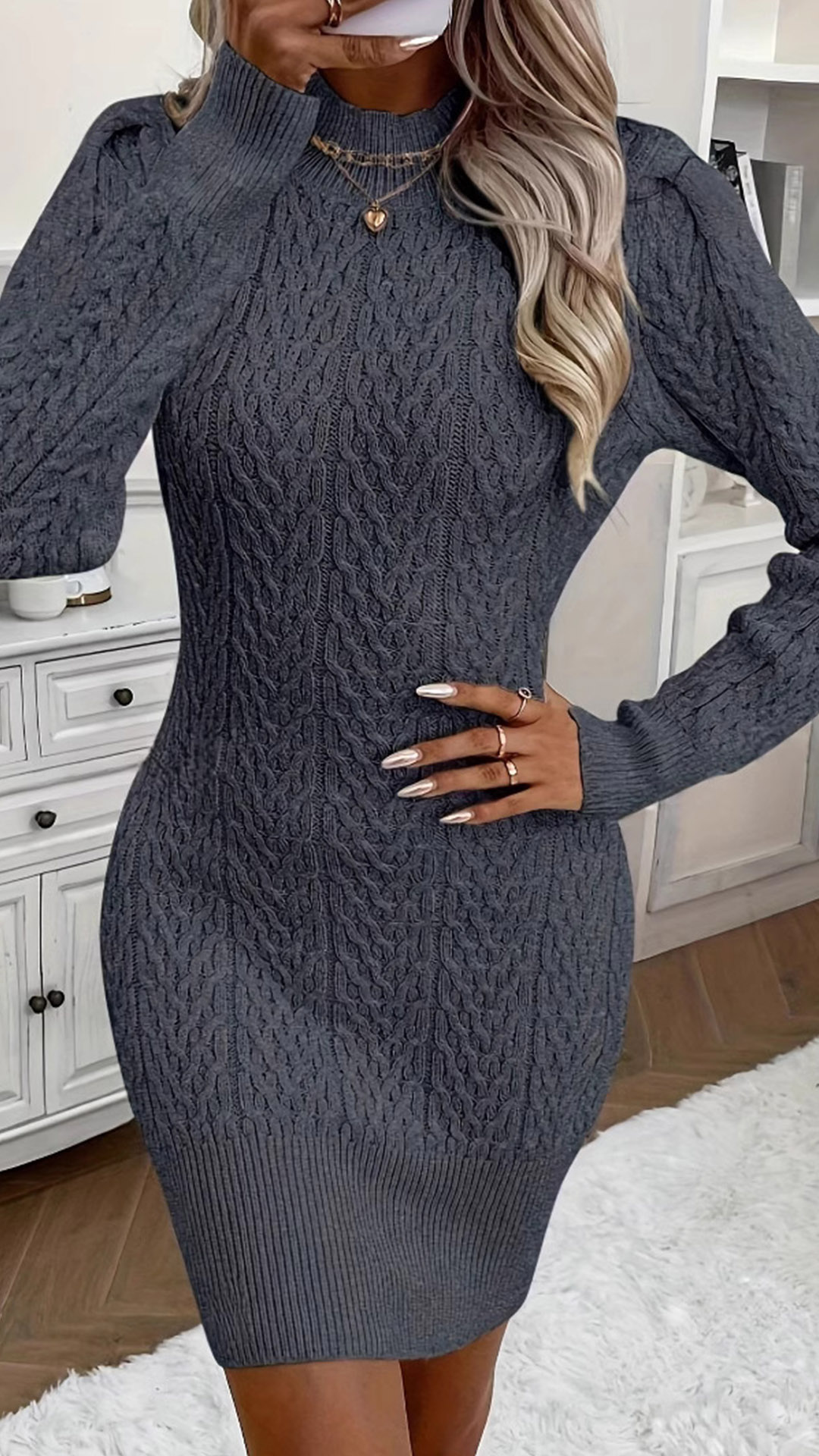 Fashion Cable Pattern Crew Neck Long Sleeve Knitted Sweater Dress
