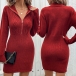 This knitted dress features a cable pattern design, a half-zipper V-neck, long sleeves, and a bodycon silhouette, creating a stylish and chic look. wanna have a try?