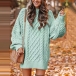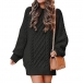 Fashion Cable Pattern Round Neck Long Sleeve Sweater Dress