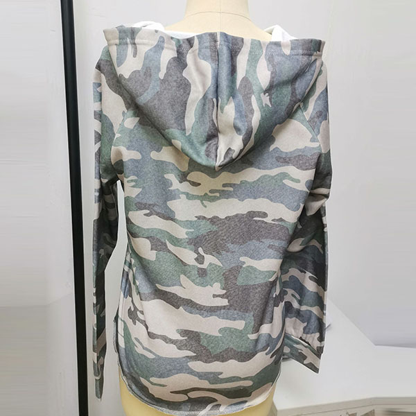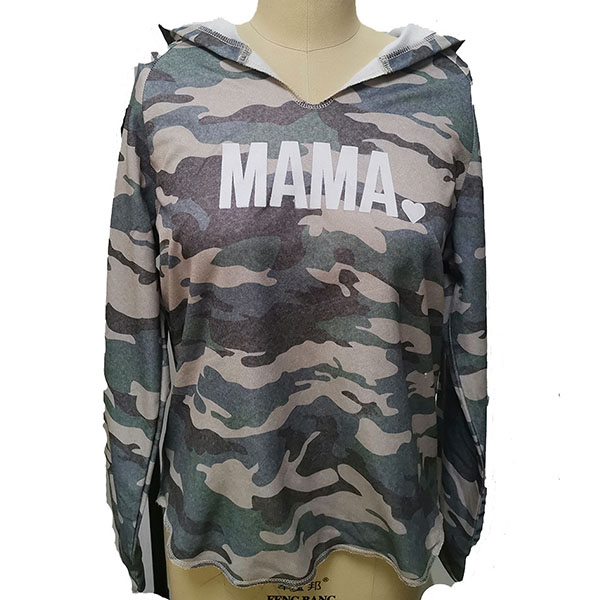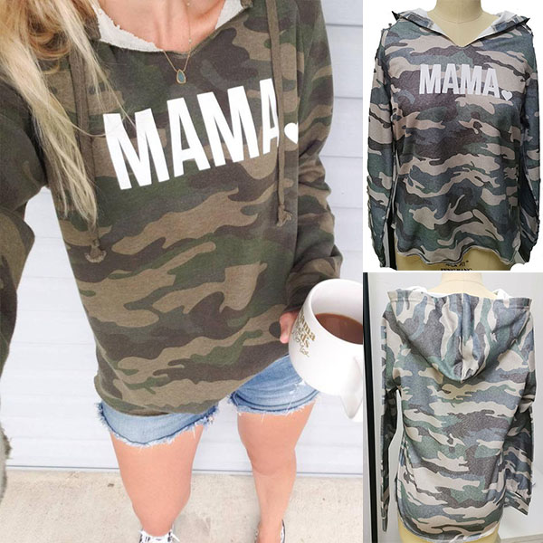 Fashion Camouflage Letters Printed Long Sleeve Hooded Sweatshirt