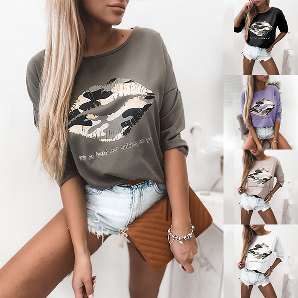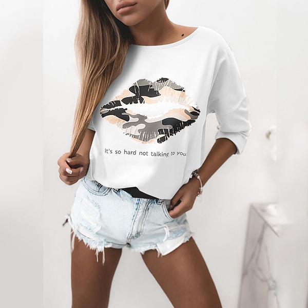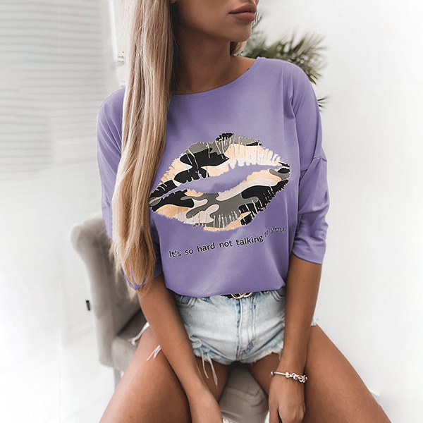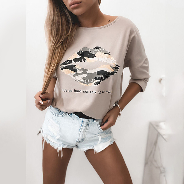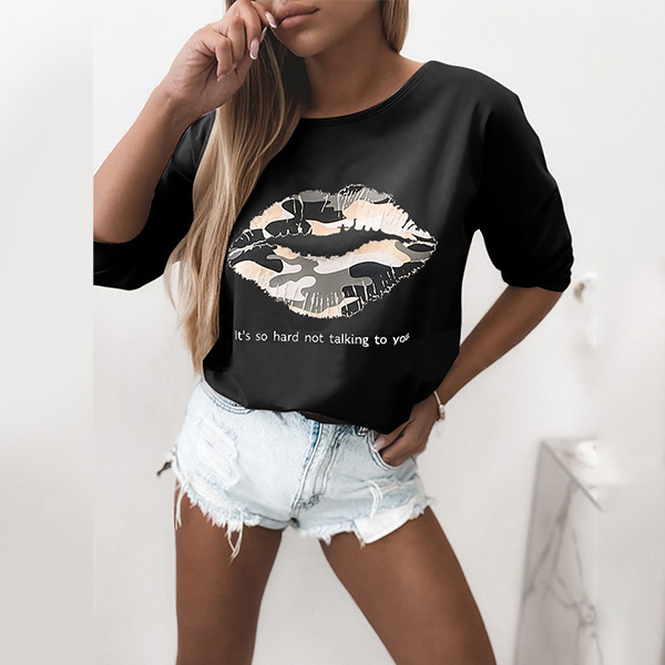 Combines of simple,cozy and stylish vibes,this t-shirt is just the thing you need on your casual days. The lip pattern with camouflage printed details make this piece look not so simple and dull,while its soft and breathable fabric can ensure you a comfortable day. Try this piece to start your wonderful day!