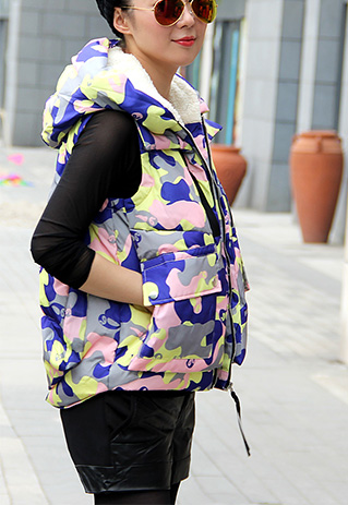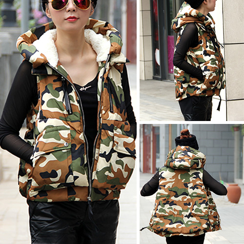 Your day is destined to be cool when you are wearing this trendy vest. Features camouflage print pattern,hooded design,with plush,soft and warm. Front zipper closure,with practical and convenient hand pockets. No matter pair with t-shirt,sweater or shirts,it looks perfect.