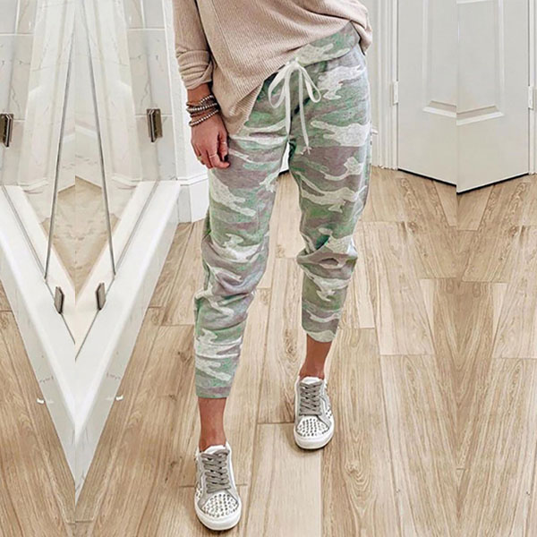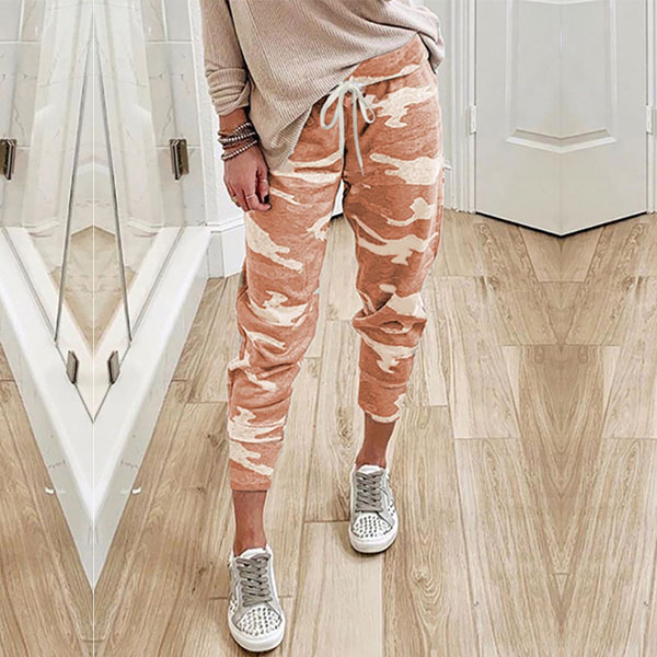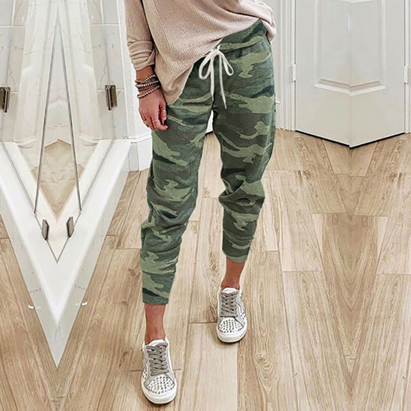 Fashion Camouflage Printed Drawstring Waist Casual Pants