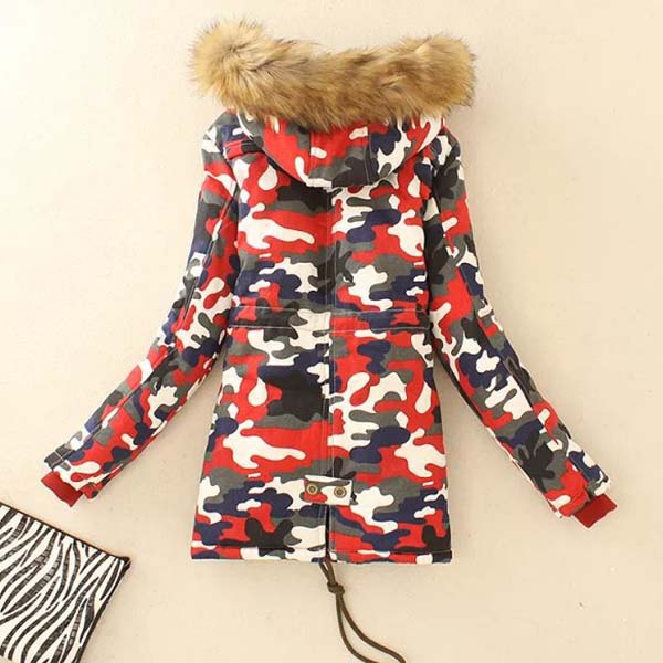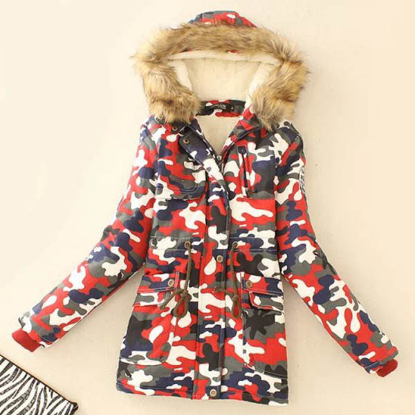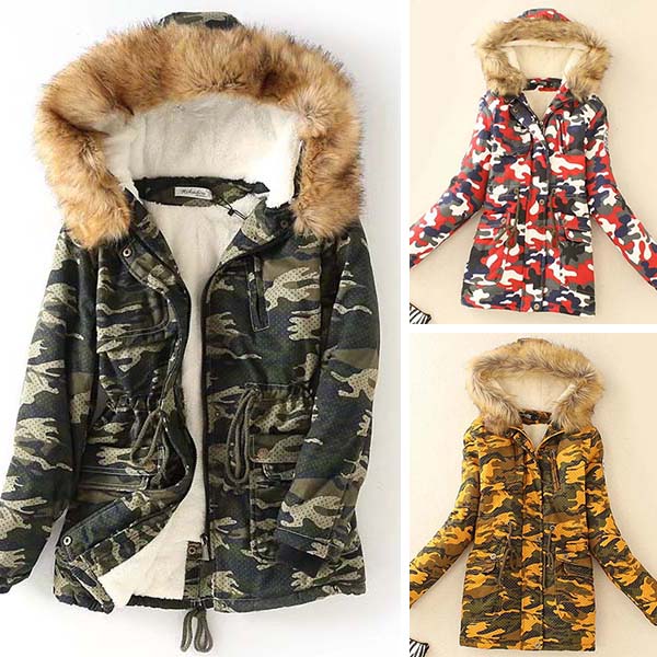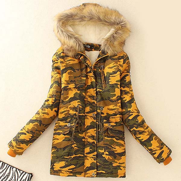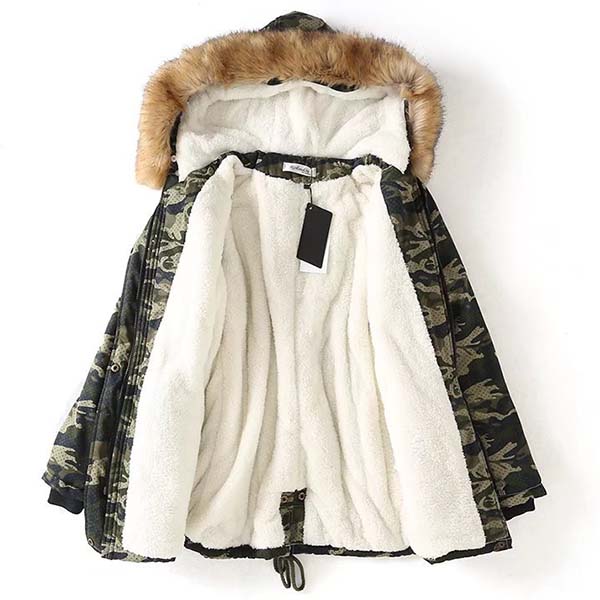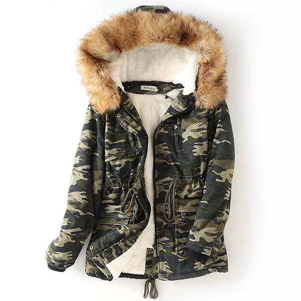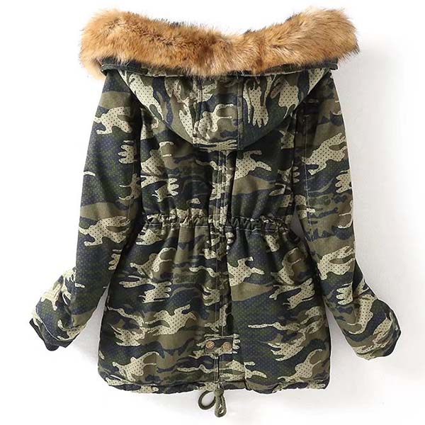 You can have a warm and wonderful winter if you have this padded coat in your team. The camouflage printed details make this piece look so stylish and eye-catching,while the faux fur spliced hooded silhouette and plush lining design can ensure you a warm and comfortable day. When the cold days hit,you can slip into this padded coat!