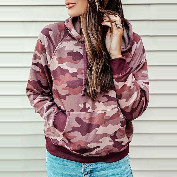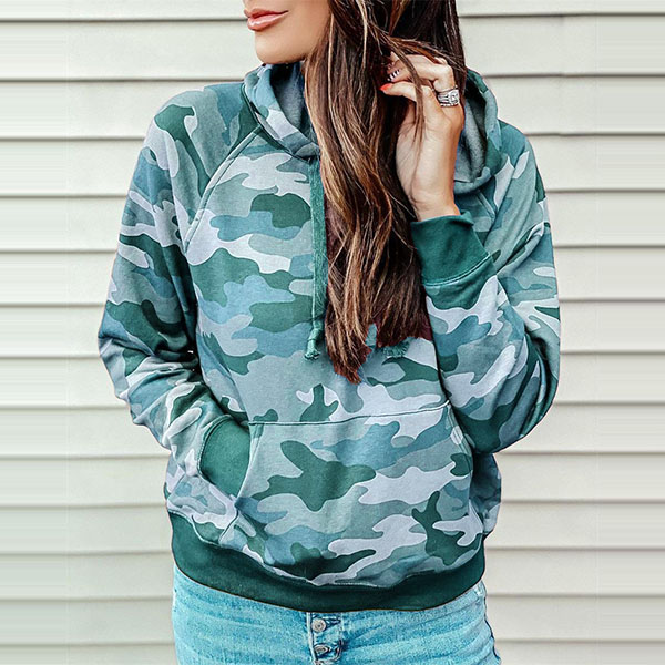 Fashion Camouflage Printed Long Sleeve Hooded Sweatshirt