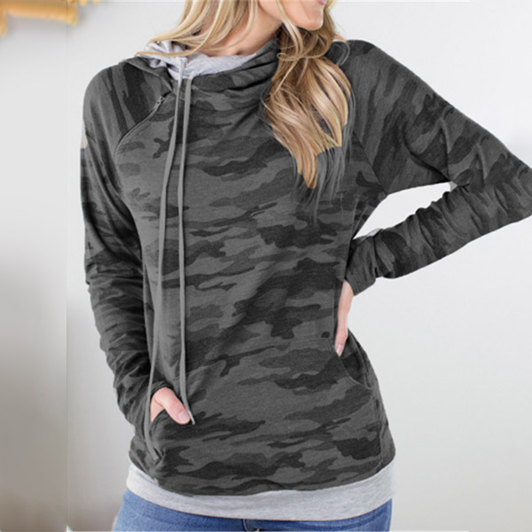 Fashion Camouflage Printed Long Sleeve Hooded Sweatshirt