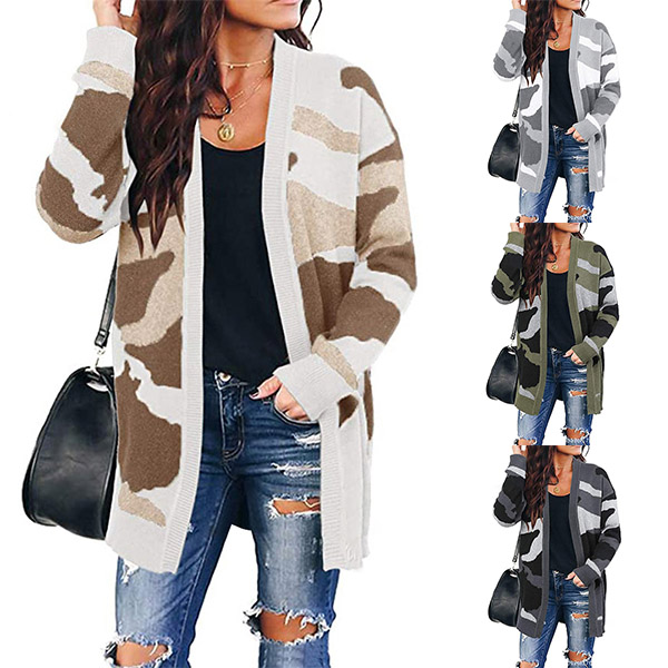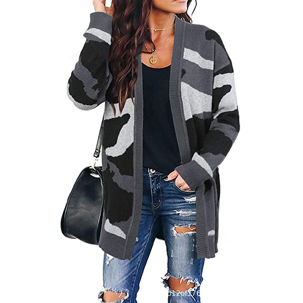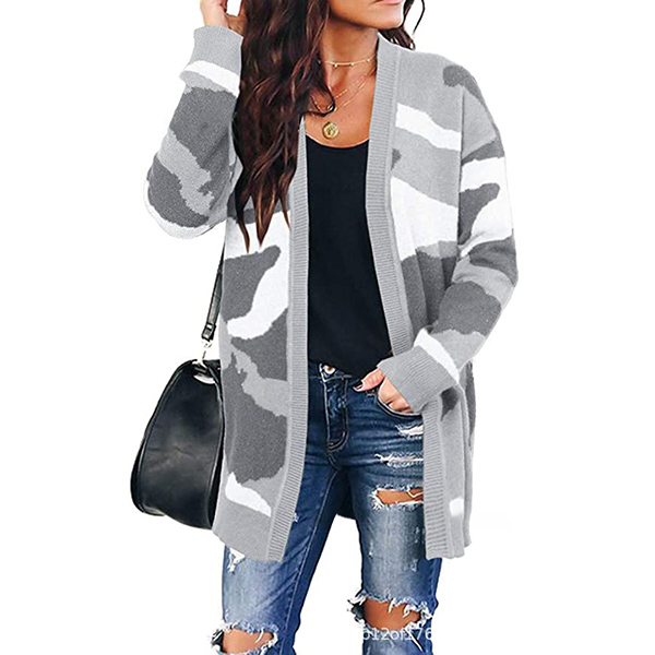 From the summer days to the autumn days,this knit cardigan can give you a perfect transition. The camouflage printed details make it look more stylish. Finished with long sleeve and a clean silhouette,this piece not only can keep the comfy and warmth,but also can be matched with different style outfits.