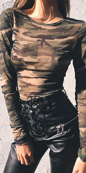 Camouflage printed style,designed with long sleeve and round neck,cozy yet sexy. No matter you pair it with your high