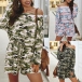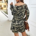 Fashion Camouflage Printed Long Sleeve Round Neck Romper