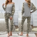 Fashion Camouflage Printed Long Sleeve T-shirt + Pants Two-piece Set