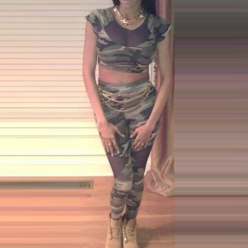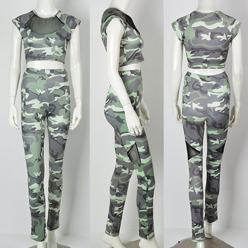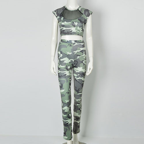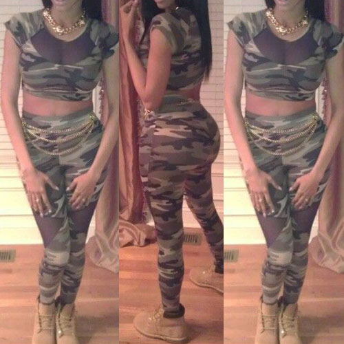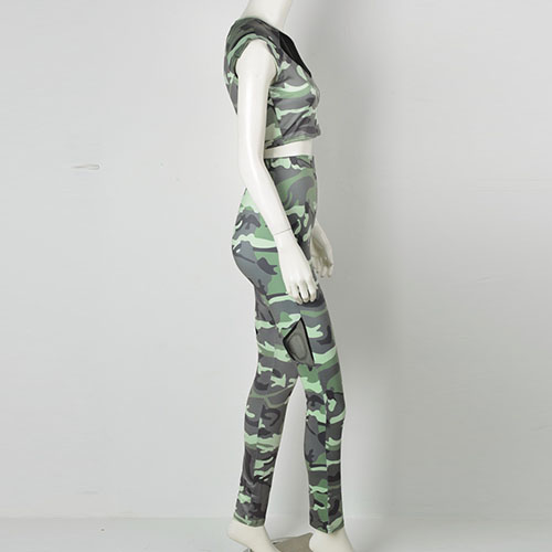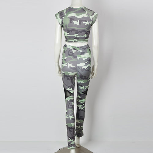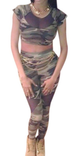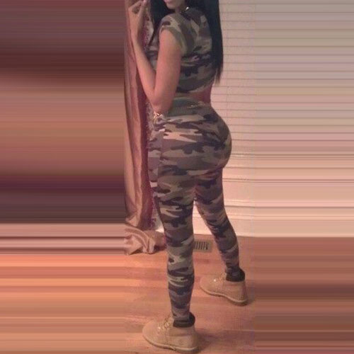 Camouflage printed style,including a short sleeve round neck crop tops and a high waist pants,this two-piece set
