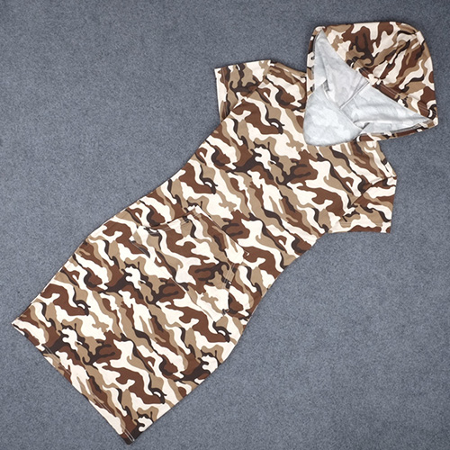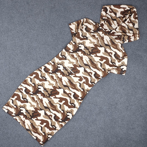 camouflage printed pattern,with short sleeve,slim fit and hooded design,simple but not simple.