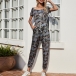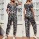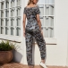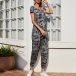 Fashion Camouflage Printed Short Sleeve Round Neck High Waist Jumpsuit