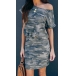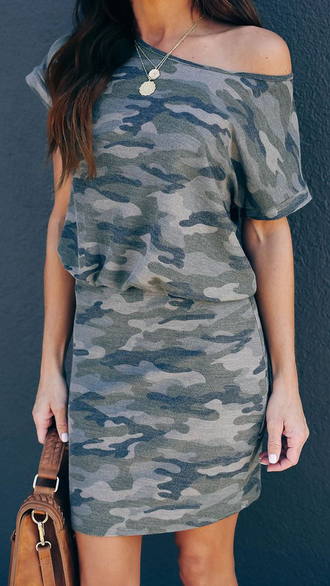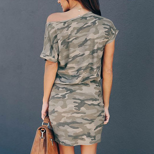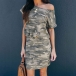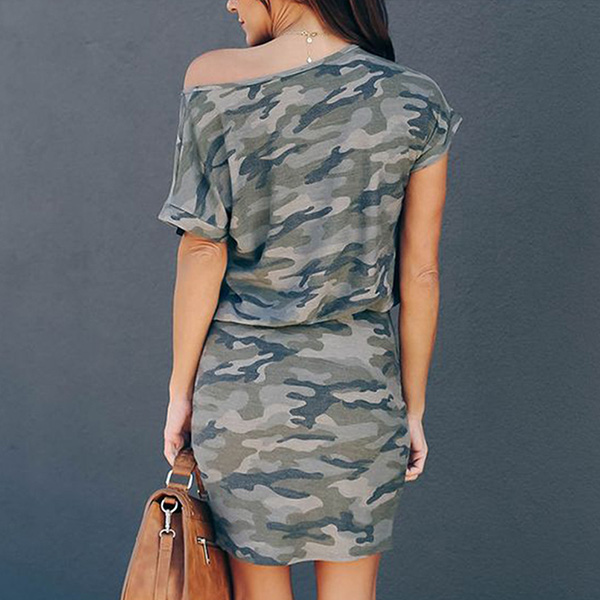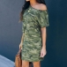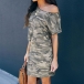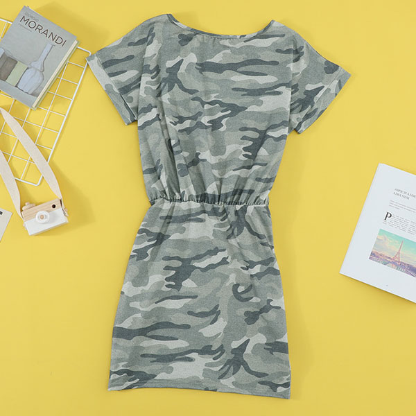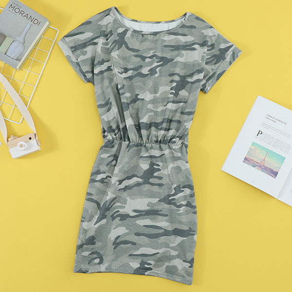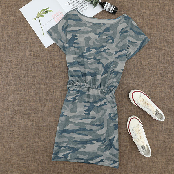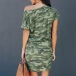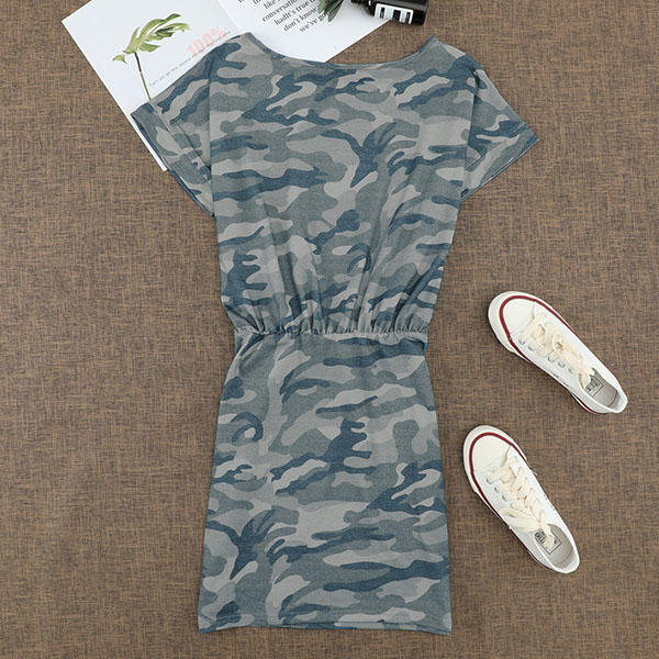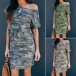 Fashion Camouflage Printed Short Sleeve Round Neck Slim Fit Dress