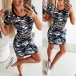 Fashion Camouflage Printed Short Sleeve T-shirt + Skirt Two-piece Set