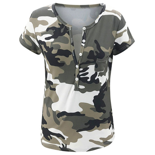 Fashion Camouflage Printed Short Sleeve V-neck T-shirt
